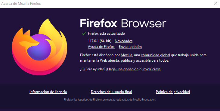 Por el contrario, si no sale este mensaje, comenzará a buscar actualizaciones y descargará la última versión, en este caso ‘117.0.1 (64-bit)’. Al finalizar aparecerá un botón que deberemos pulsar ‘Reinicie para actualizar Firefox’