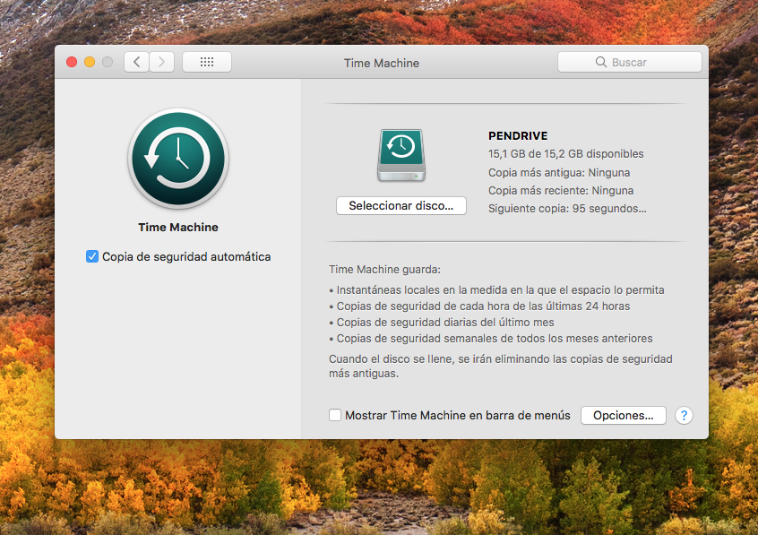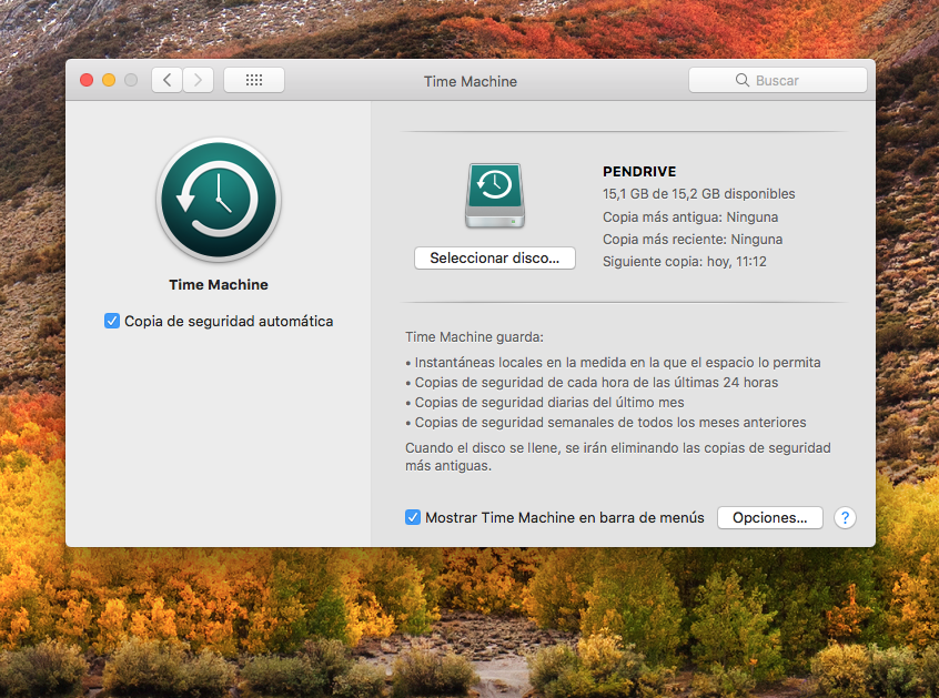 Iremos a Preferencias del Sistema > Time Machine.